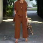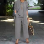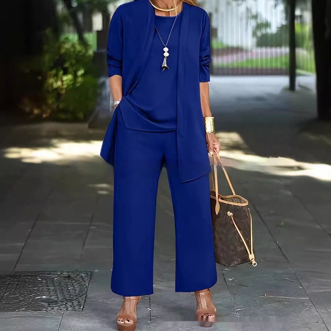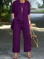 Be the first to review “Pure Color Split Round Neck Sleeveless Vest Top Long Sleeve Cardigan Jacket Wide Leg Pants Suit”